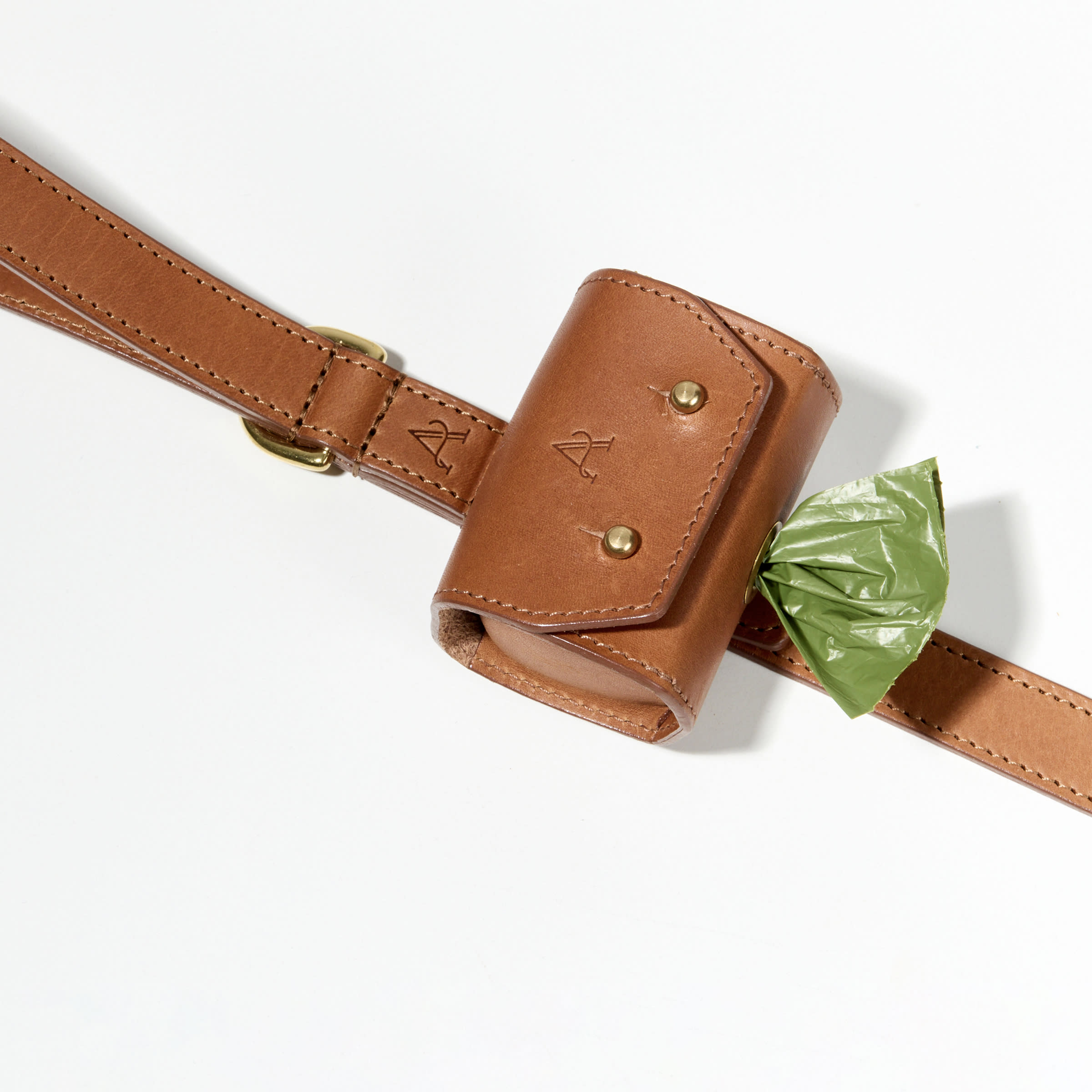 This poo bag holder is made to complement our classic leash by firmly attaching to it in such a way as to avoid it swinging around when walking. It is designed to house a regular roll of poo bags, perfectly dispensing one bag at a time, and fastens up using solid brass studs.
